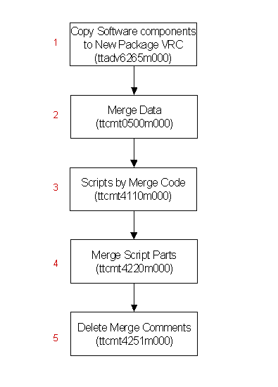 During the merging procedure, the Merge Script Parts (ttcmt4220m000) session adds comments to the merged scripts in the target VRC. Remove these comments to avoid problems during a future merge. If the merged scripts function properly in the target VRC, you can use this session to delete these comments.