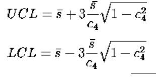 The range limits for the standard deviations are calculated using the following formulae. These limits are plotted in the lower plotting area.