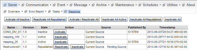 Activate/Reactivate All to activate all mappings, both when the mapping is inactive and when the mapping is republished, but not yet reactivated.