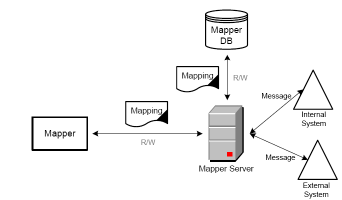 Business Document Mapper is used to create and deploy mappings. On a high level, a mapping is a description of how to transform or translate messages or documents sent between internal and external resources. On a detailed level, a mapping is an XML file expressing a transformation between input and output elements, and attribute structures defined by XML schemas representing the input and output messages and documents. Business Document Mapper provides the capabilities to define mappings, for example, for OAGIS BODs, EDI, EBS, financial messages, and others.