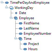 Our second example is more complicated. In this example, we will use the same input structure to group the time transactions per day (date) and employee.