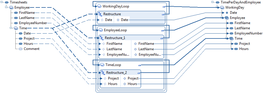 This diagram shows that the nested loops are controlled by Restructure functions.