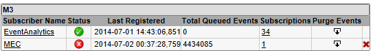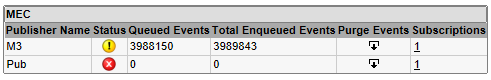 In this example click the first icon to remove all undelivered events from publisher M3 to subscriber EC. See this screenshot: