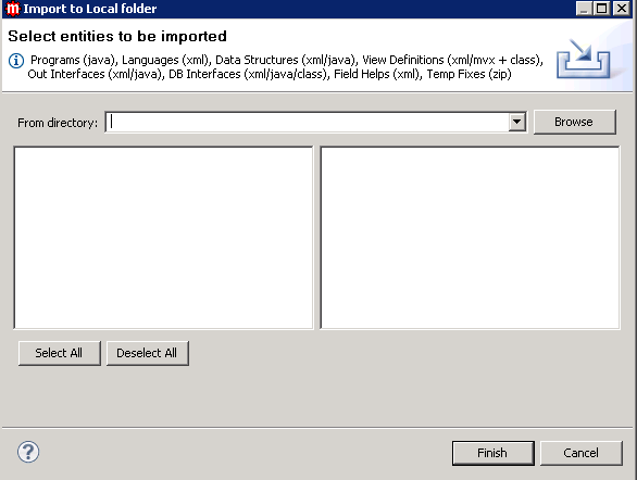 Use this procedure to import non-local entities to your workspace. You can import these files not associated with any MAK Project in the workplace using the Local node.