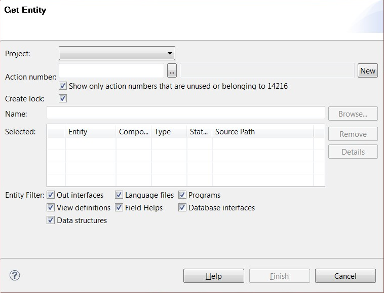 If a lock exists, a message is displayed that the entity is locked by another user. Clear the Create lock check box and click Finish to open the entity.