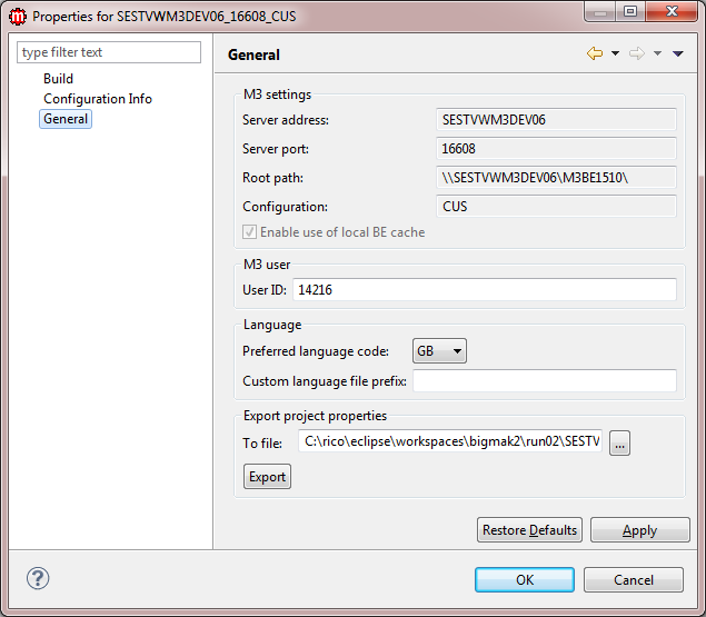 This property displays information about the class path and view path that was used to create the project, which are used when retrieving sources and for building. |