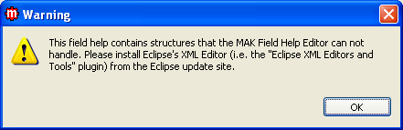 Note: If a complex Field Help structure has been detected, a warning message that will prompt you to install Eclipse XML Editor is displayed.