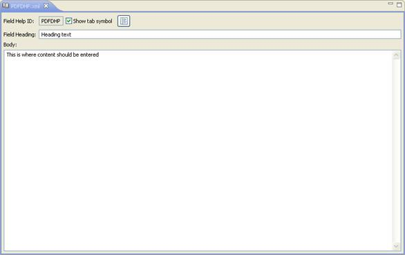 You can edit a field help message by modifying the text in the Body area. The Field Help Editor is used to manage and create new field help files. The editor is displayed using the Get command for field help files or when a Field Help is opened from the M3 Adaptation Kit (MAK) Navigator view.