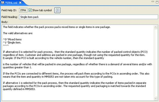 If field help is used the column for “=” is added automatically when displaying the field help.