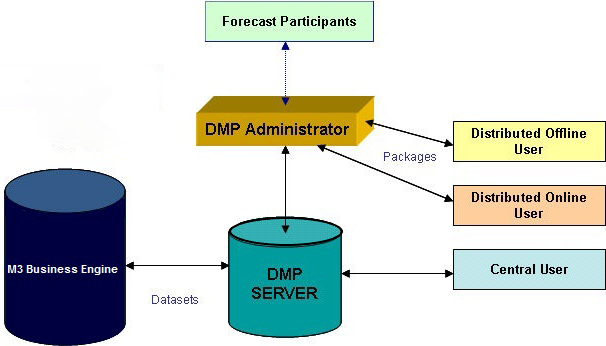 M3 DMP is a key component group in the business application M3 that offers advanced features to manipulate and create forecast values in a Dataset in M3 Business Engine. M3 DMP supports a collaborative approach to forecasting using a distributed process flow.