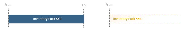 Although the inventory pack record is created at the from date, the pack does not exist, and is not included in production figures or KPIs, until completion.