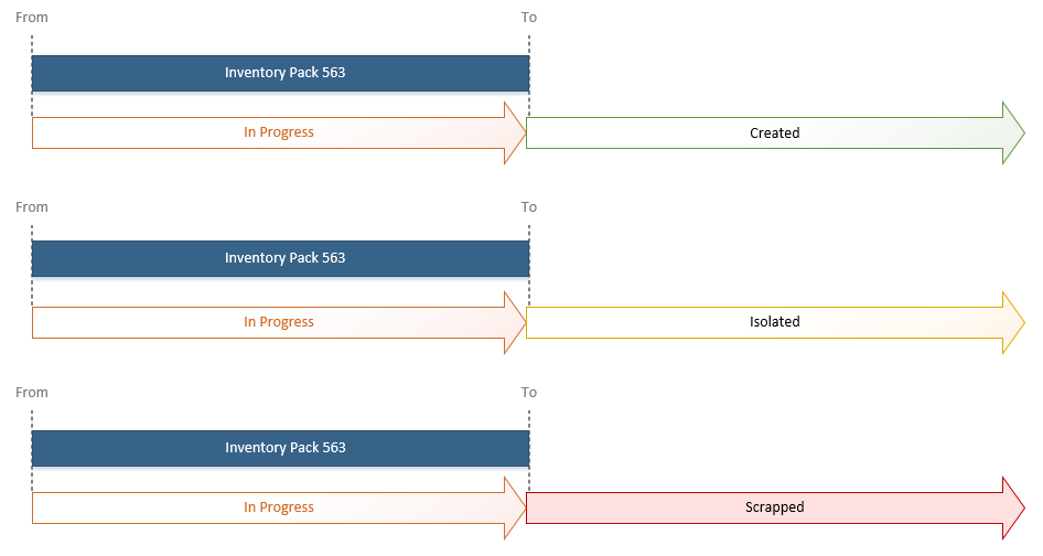 This mode is typically used in batch and assembly processes. Whilst It is the more complex of the two options because it requires more operator interactions, the primary benefit is that inventory packs exist in advance of the being completed. This enables materials to be explicitly consumed into the inventory pack using serial traceability, often required for batch and assembly processes..