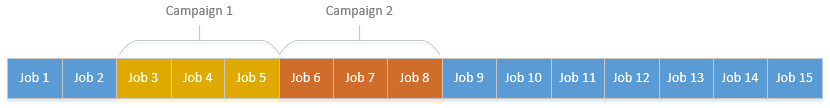 You can schedule multiple campaigns on a line and specify the sequence on the line of each one. For example, Campaigns 1 and 2 would be sequenced as 1 and 2 respectively.