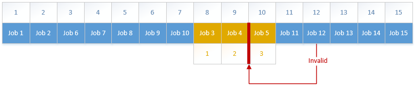 For example, if there are fifteen (15) jobs scheduled on a production line, locking together jobs 3,4, and 5 creates a campaign: