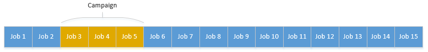Jobs in a campaign are scheduled to run one after another, the Jobs in a campaign could be for the same material, or for different materials.