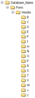 Using the last example in Designating multiple objects for pseudo code generation, when FormSync generates pseudo code files for the forms that have names beginning with the letter "N", FormSync creates a subfolder labeled N. For each form FormSync finds with the string "codes" in the name, it creates an appropriate subfolder. For example, if FormSync finds a form named TaxCodes, FormSync then creates a subfolder labeled T and places the generated file into it. Finally, FormSync creates subfolders for each set of forms it finds that begin with the letters "w", "x", "y", and "z".
