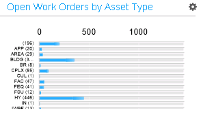Uses horizontal bars to measure values against a specified maximum and to compare values to each other. For example, you can compare work orders for different asset types. You can use the panel's preferences to set the maximum value. In some cases you can also click a bar in the chart to view the records in Infor Operations and Regulations GIS. |