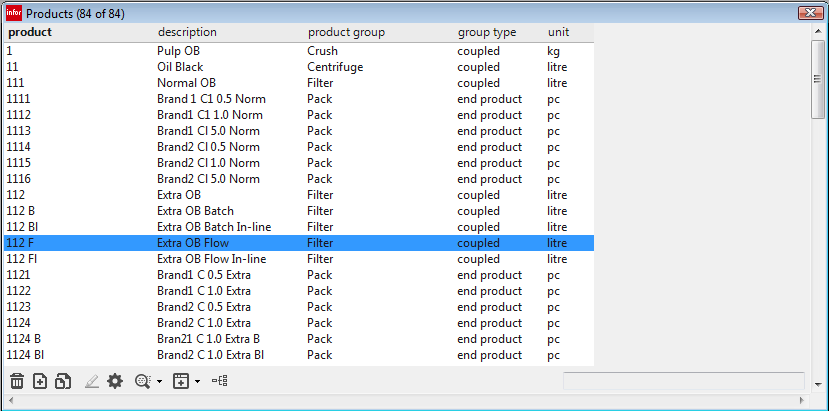 Overview windows display a list of records together with the most important attributes. For example, the Products overview window displays all products and key attributes. You can select alternative overview windows for orders and process batches.