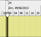 The time axis can contain segments for months, weeks, days, and parts of a day, right down to segments of 10 minutes. The red line indicates the current time. You can adjust the size of the work area by using the hand pointer on the left and right borders.