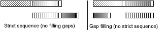 The Strict sequence (do not fill gaps) option is used if you require to fix the current sequence. If you select this option, the selected sequence is not interrupted, even if the sequence contains gaps that are large enough for other batches to fit in. If you do not select this option, the sequence can be changed where that leads to better process utilization. If resources are in both choice and combination groups, gaps may occur in process utilization. Infor Production Scheduling tries to fill these gaps. If there are variable changeover times (changeover matrices or changeover rules), the changeover times are recalculated to consider the new sequence.