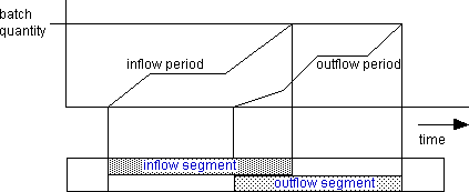 A batch has inflow and outflow segments. During these segments, there is product flow into and out of the batch.