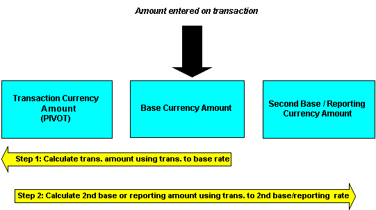 The use of the pivot currency to convert currency amounts is best illustrated using examples.