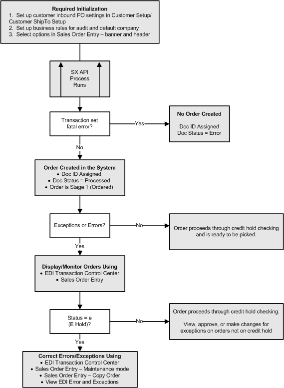 Flux de travail de la Gestion complète des commandes SX.API pour EDI 850/840