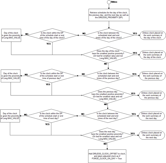This diagram shows the processing flow when the FORCE_CLOCK_ON_DAY parameter is FALSE:
