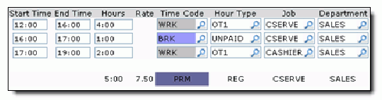 Although the employee recorded 6 hours of eligible time in the zone, the maximum duration of the premium is 5 hours, so the Shift Premium Zone pays the employee a 5 hour premium at $7.50 an hour.