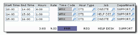 The premium is paid against the HELPDESK job (the first work detail which earned the employee the premium) and the SUPPORT department.
