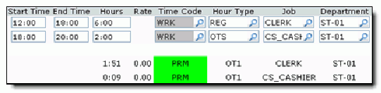 | 2 | PRM | OT1 | Premium time and a half overtime rate at $12 an hour | $24 |