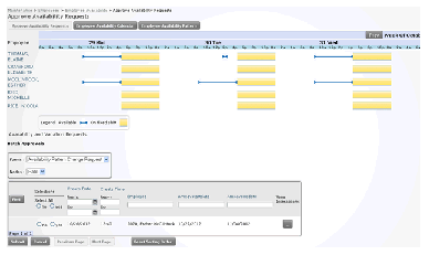 The Batch Approvals section on the Approve Availability Requests page, is one way to approve employees’ availability change requests and vacation requests. For other ways, see Approving Requests.