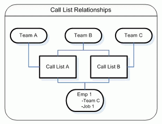 Employees to which relief shifts are to be offered in the Relief Calling Area can be retrieved by teams, by employees, or by call lists. Call lists are used in the Relief Calling Area to determine the list of employees that are displayed in the Employee Pool. Call lists are associated with teams. There can be multiple call lists associated with a team and a team can be associated with multiple call lists. There is no limit to the number of call lists that any particular user can create.