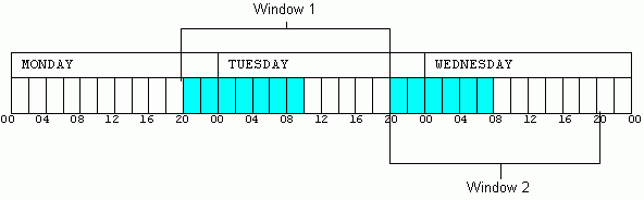 • Monday 8:00 PM to 8:00 AM