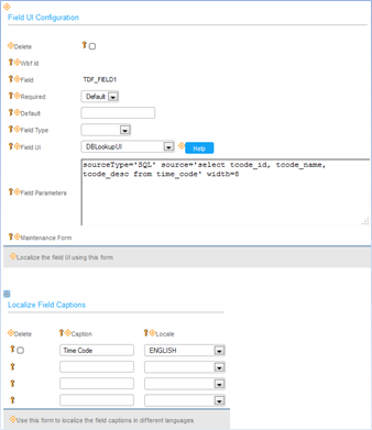 In this example, TDF_FIELD1 has been configured to display data from the TIME_CODE table: