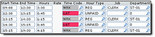 The employee's timesheet has several segments of work, and two, 45-minute segments with the UAT time code.