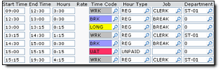 - Eligible breaks are paid against the BREAK job and the employee's normal department.