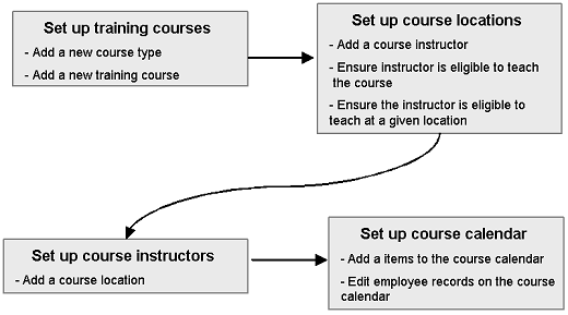 - Define a list of training courses that employees must complete before undertaking various jobs. (Most companies have a list of courses that can be imported into the application.)