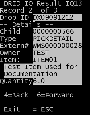 このセクションでは、特定の追跡 ID の明細を調べる方法について説明します。このオプションを使うと、その追跡 ID の従属 ID やタイプ、外部注文番号、荷主、品目、および数量を特定できます。