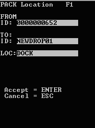 Após pressionar Enter para confirmar, o aplicativo determinará se a ID de depósito digitada já existe. Se não existir, o aplicativo solicitará que você digite o local do ID de depósito. No exemplo atual, DOCA foi digitalizada como o local.