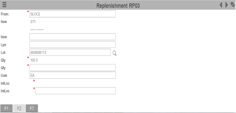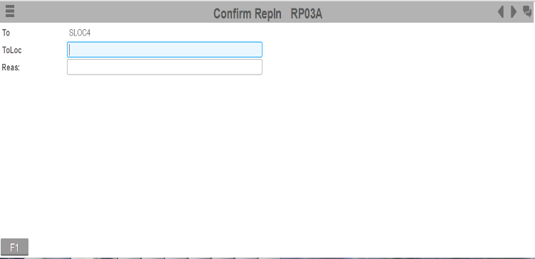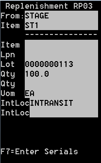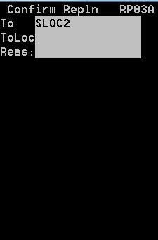 Para aceitar uma tarefa, pressione Enter. Sempre que você aceita uma tarefa, a tela Reposição (RP03) é exibida.