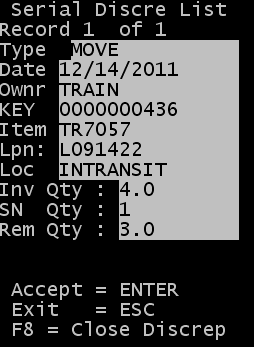 Wenn sich ein RF-Operator an seinem RF-Gerät anmeldet, wird eine Benachrichtigung angezeigt, wenn offene Transaktionen mit einer Bestandsabweichung vorhanden sind. Wenn eine solche Benachrichtigung angezeigt wird, kann der Operator die aufgetretenen Probleme entweder sofort beheben oder sie umgehen, um mit seinen planmäßigen Tätigkeiten fortzufahren.