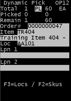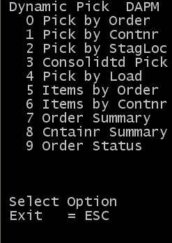 Wählen Sie im Menü Kommissionierung Dyn. Kommiss. aus. Das Menü "Dynamische Kom (DAPM)" wird angezeigt.