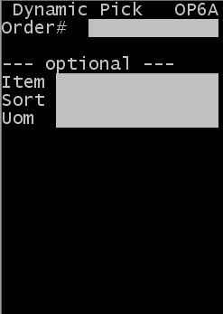 Wählen Sie Pick by Order. Die Maske Dynam Komiss (OP6A) wird angezeigt.