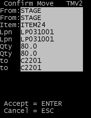 - Drücken Sie zum Übernehmen der aktuellen Umlagerungsaufgabe die Eingabetaste.