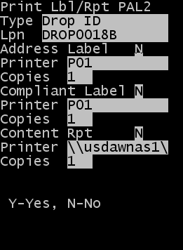 Über diese Maske drucken Sie nach Beendigung des Kommissionierungsvorgangs das Adressetikett und den Inhaltsbericht für die Sammel-ID/Packstück-ID.