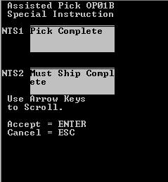 - Kommissionierungsanmerkungen werden angezeigt, nachdem Sie alle erforderlichen Daten in das RF-Gerät eingegeben haben und zum ersten Mal die drücken. Dies erfolgt vor der Transaktion auf die Datenbank durch die Anwendung.
