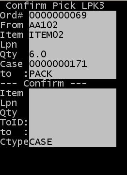 HinweisSie können RF-Kommissionierungsstrategien auf der Workstation konfigurieren, um für vier der oben aufgeführten Felder zu steuern, welche Eingabe vom Bearbeiter verlangt wird: Lizenzplakette (LPN), Zu LPN/Zu ID, Zu Lagerplatz und Versandverpackungsart. Informationen zu den RF-Kommissionierungsstrategien finden Sie im Infor WMS Anwenderhandbuch Konfiguration. Auch der Editor für Anweisungen/Aufforderungen steht zur Verfügung, um das RF-Verhalten einschließlich der Felder zu steuern, die während der Kommissionierungsbestätigung angezeigt werden und eine Eingabe verlangen.