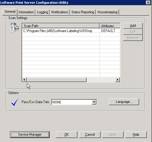 So fügen Sie im Loftware Label Manager einen Ordner zur Liste der zu scannenden Ordner hinzu: