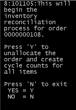 You are immediately presented with a cycle count task to begin the count process if desired. You can press Esc to cancel out of the task. You can access the tasks using a separate menu option at any time as needed.
